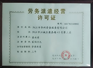 華科勞務(wù)服務(wù)有限公司是專業(yè)從事人事代理、勞務(wù)租賃、人力派遣及管理的綜合性服務(wù)機構(gòu),是首批獲得廣東省人力資源廳、陽江市勞動和社會保障局頒發(fā)人力資源許可證的合法單位。公司秉承“誠信務(wù)實、專業(yè)熱情、滿意第一、服務(wù)社群”的經(jīng)營理念,在勞務(wù)派遣業(yè)務(wù)的基礎(chǔ)上,更致力于合同制工人(臨時工、實習(xí)生、假期工)方向發(fā)展,為用工企業(yè)及時輸送合格的各類人才,合理調(diào)配人力資源的有序流動,幫助求職者尋求更加滿意的就業(yè)渠道和崗位,切實維護求職者的合法權(quán)益。